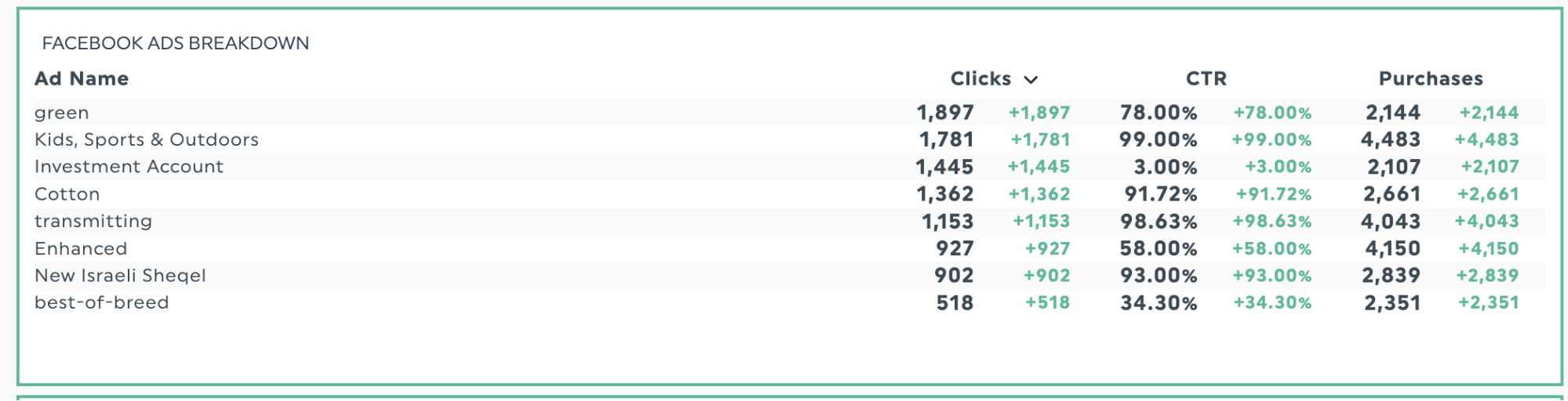 You can connect multiple data points to tell a bigger story. Suppose your client wants to improve paid social media acquisition in Q4 but isn't sure which channel should get more budget. Show how the metrics move together and what that implies for spend. For example: