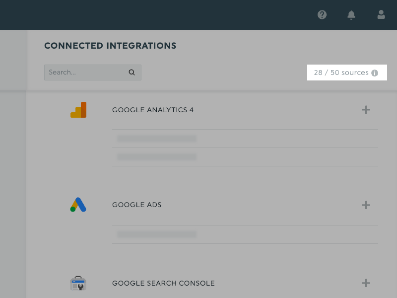 Each distinct entity you connect counts as one source, even if they come from the same platform or login, if it’s used across multiple dashboards.